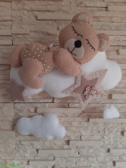 Babaszoba dekoráció - maci felhőn (natúr színvilágban)