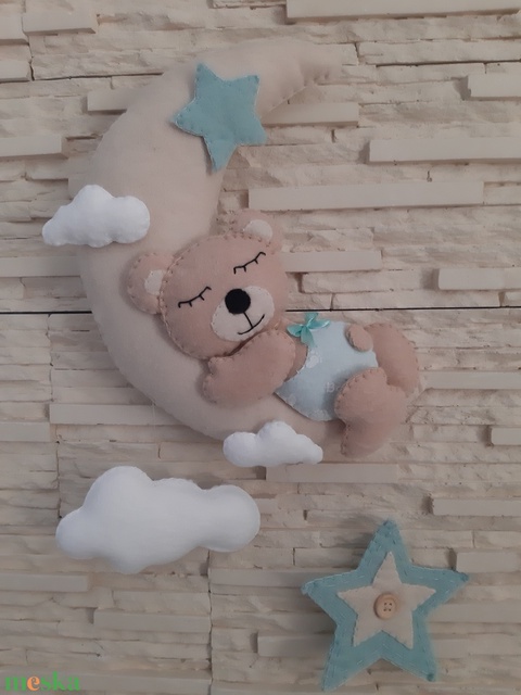 Babaszoba dekoráció - holdas maci (halvány menta)