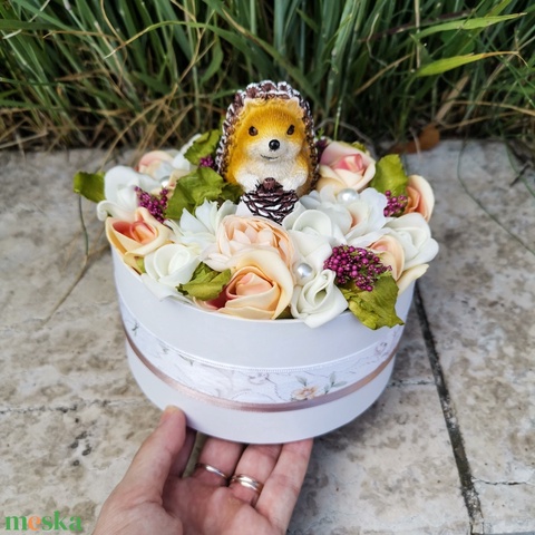 - Anyaga: habrózsa, rózsa, polyfoam, művirág, papír, kerámia, selyemvirág, gipsz, szatén