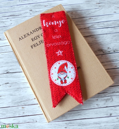 Télapómanós karácsonyi könyvjelző piros kötött alappal