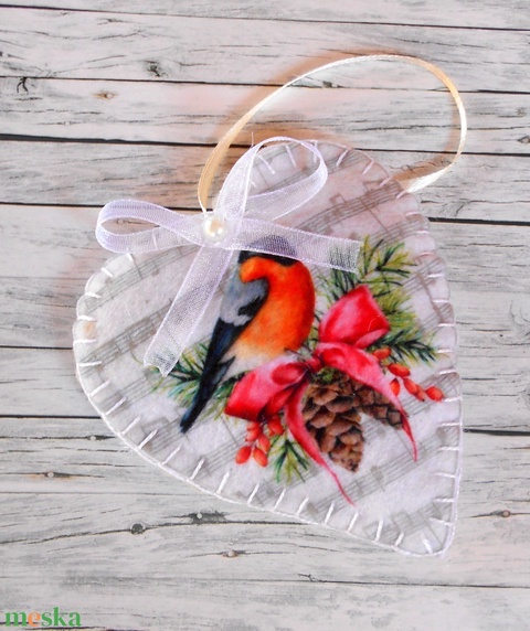 Vintage stílusú szív alakú karácsonyfadísz (süvöltő)