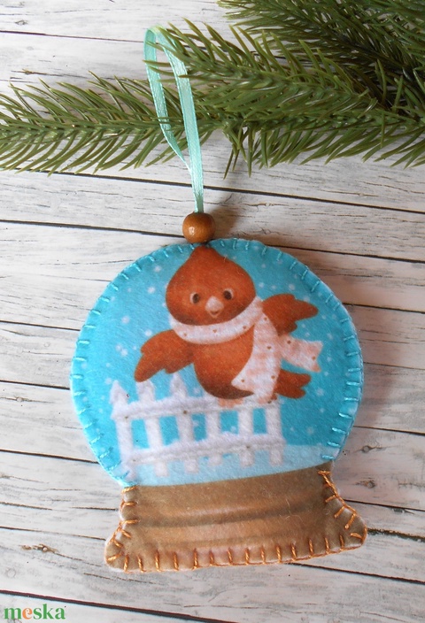 Különleges hógömb alakú karácsonyfadísz (veréb)