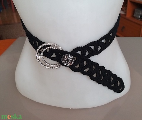 - Anyaga: strasszköves csat, díszgomb, horgolofonal