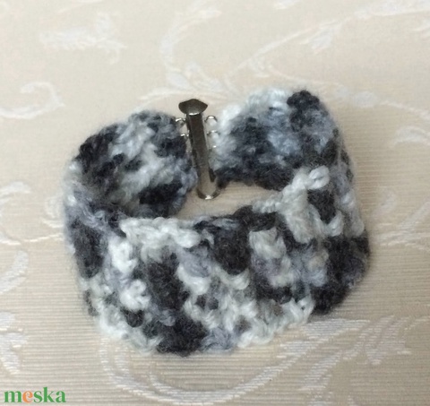 Egyedi horgolt széles karkötő, ezüst színű mágneses kapoccsal - Kisherceg design