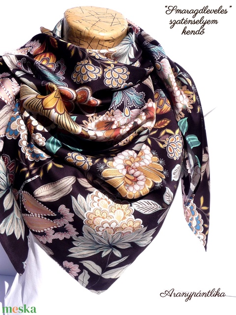 "Smaragdleveles" szaténselyem kendő