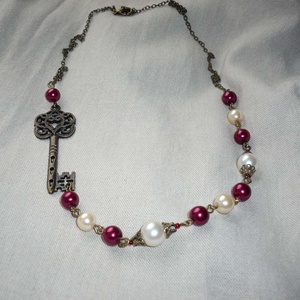 Bíbor titok - kulcsos asszimetrikus vintage nyaklánc