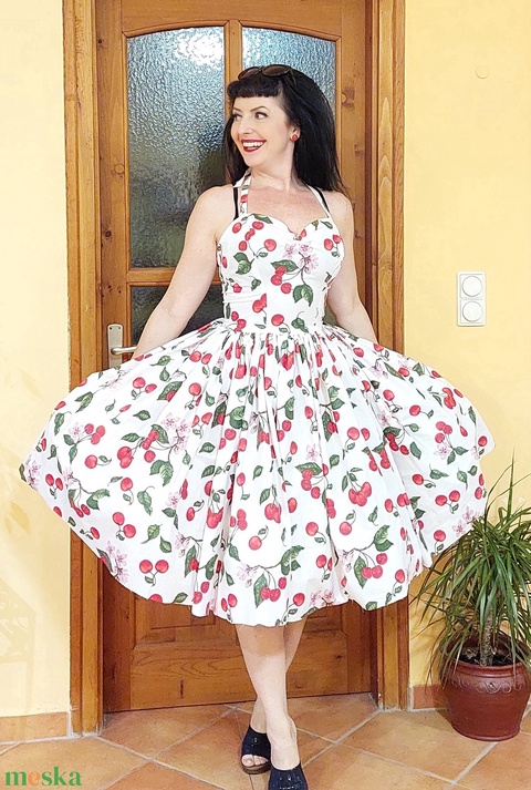 Pinup Rockabilly ruha cseresznye mintás, virágos