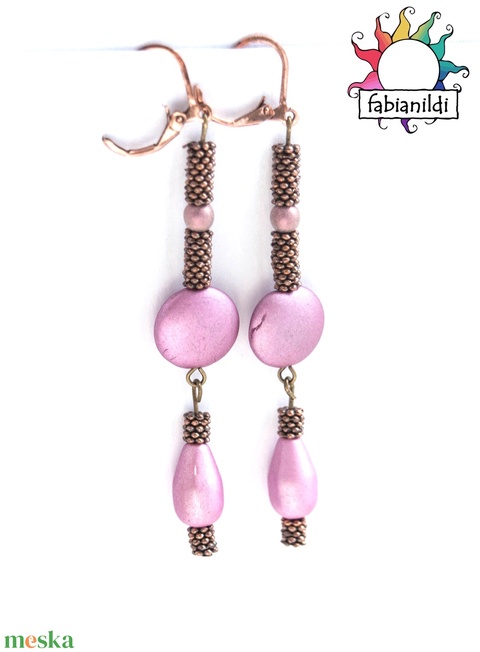 - Anyaga: fülbevaló alap, vörös réz szerelék, üveg gyöngy