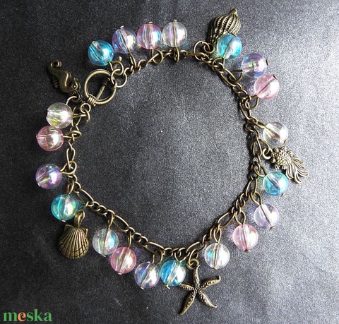 bronz lánc, antik bronz szerelék, t-kapocs, akrilgyöngyök
