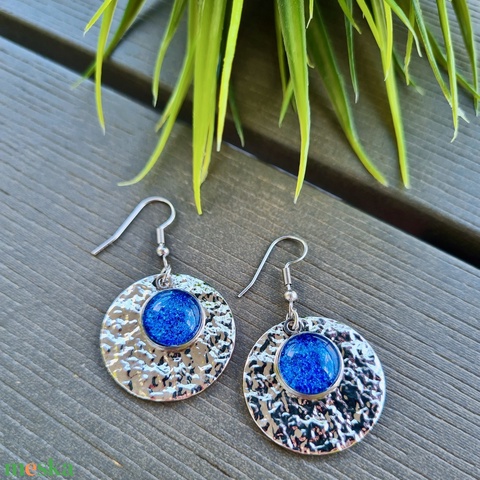 Csillogó királykék - ezüst nemesacél fülbevaló textúrás kör díszítéssel
