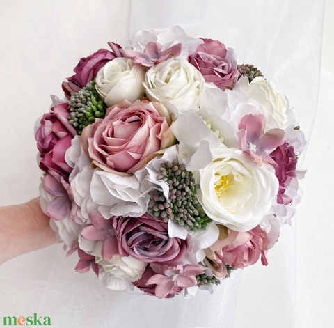 Selyemvirág menyasszonyi csokor mályva