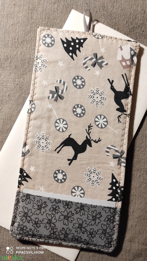Rénszarvasos üdvözlőlap, textilkép, pénzboríték