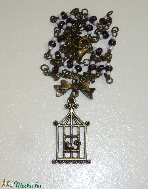 Mályva-fehér Madárkalitka - vintage nyaklánc