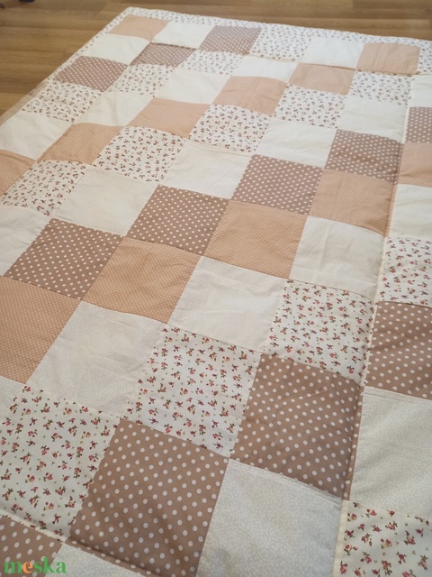 Felnőtt méretű patchwork paplan, takaró - Bézs virágos