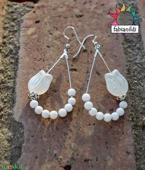 - Anyaga: fülbevaló alap, ezüst szerelék, üveg gyöngy