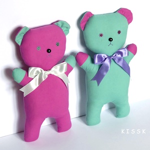 - Anyaga: pamuttextil, szaténszalag, poliészter töltet, flitter, gomb