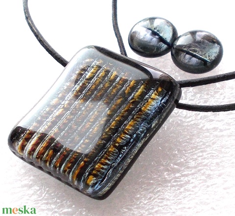 - Anyaga: dichroic üveg, ékszer szerelék, bőrszál, üveg, rozsdamentes