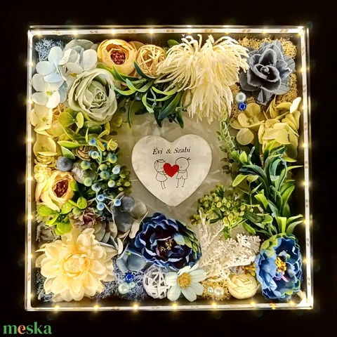 Selyemvirág kép világítással esküvőre, házassági évfordulóra, emlékbe