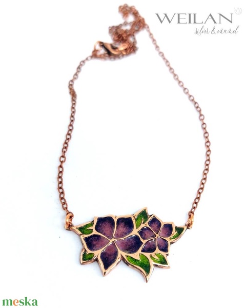 Flora - Nefelejcs bronz, tűzzománc nyakék, láncon - lila