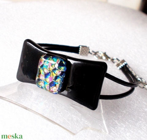 - Anyaga: ékszer üveg, ékszer szerelék, viaszolt szál, bőrszál