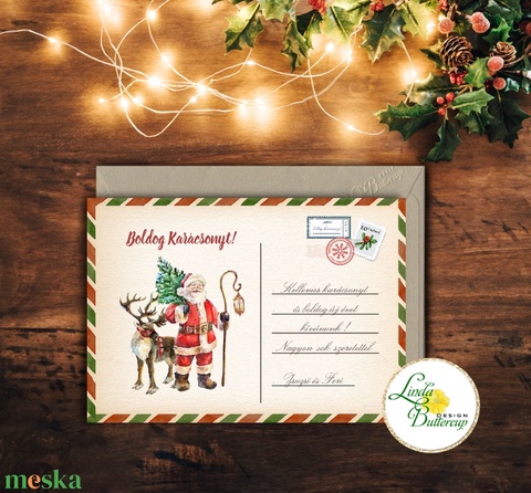 Vintage Karácsonyi Képeslap, Személyre szóló, egyedi, név, Karácsonyi üdvözlőlap, Ünnepi képeslap, posta, mikulás, régi