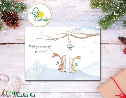 Karácsonyi Képeslap, Nyuszis, egyedi Képelap,s Karácsonyi, Karácsonyi üdvözlőlap, nyuszi, nyúl, állatos, névre szóló