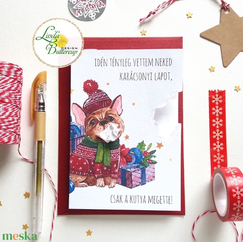 Karácsonyi Képeslap, Vicces, Humoros, kutyás, kutya, állatos egyedi, Adventi Képeslap, Karácsonyi, üdvözlőlap