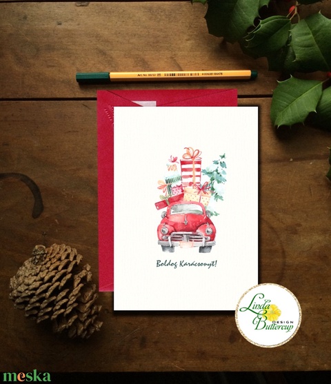- Anyaga: 250 gsm vászon mintáju fehér művész papír, extra mínőségű boríték, celofán, tinta