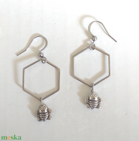 NEMESACÉL Honeycomb Minimál napsárga lógós nemesacél fülbevaló, méhecske és méhsejtes fülbevaló