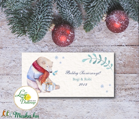 Karácsonyi ajándék, Pénzátadó boríték, utalvány átadó, céges ajándék, pénz, képeslap, személyre szóló, jegesmedve, maci - otthon & életmód - papír, írószer - boríték - Meska.hu