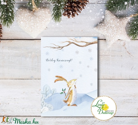 Karácsonyi Képeslap, Nyuszis, egyedi Képelap,s Karácsonyi, Karácsonyi üdvözlőlap, Ünnepi képeslap, nyúl, állatos, cuki