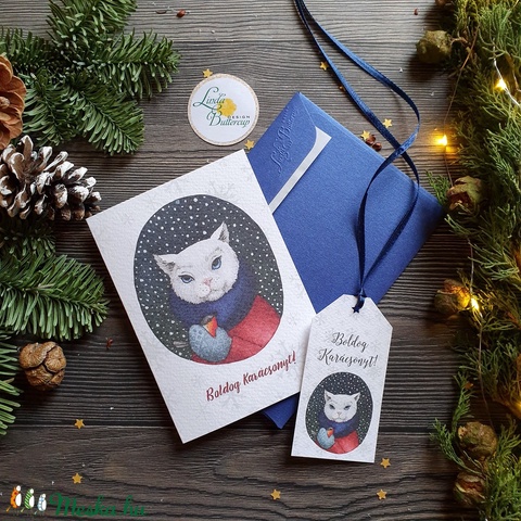 - Anyaga: 250 gsm vászon mintáju fehér művész papír, extra mínőségű boríték, celofán, tinta