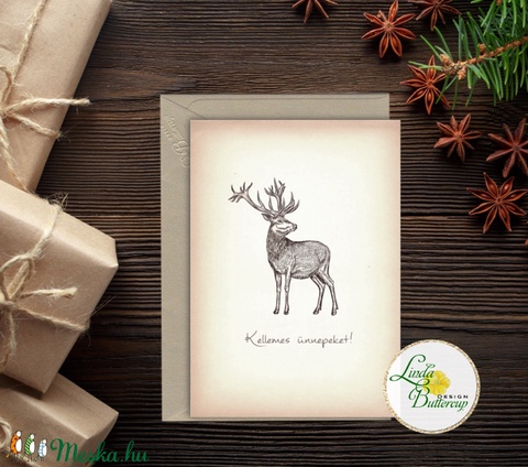Karácsonyi Képeslap, vinatge, állatos, szarvas, agancs, szarvasos, régi, karácsonyi üdvözlőlap, ünnepi képeslap,