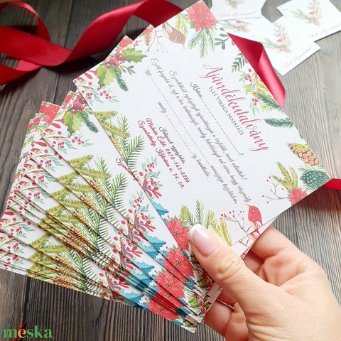 Karácsonyi ajándékutalvány vállalkozásodhoz Fotográfusoknak, Fodrászoknak, Kozmetikusoknak bárkinek aki elegáns stílusban szeretné vállalkozását megjeleníteni és promotálni az ünnepekre. Egyedi tervezésű névjegykártya Ajándékutalvány * Nyomtatás: egy oldalas nyomtatás * 250g textúrált Művész papír * Méret: kb.: A6 - 14 x 10 cm Egyszeri szerkesztési díj: 3.000Ft, A SZERKESZTÉSI DÍJAT IS TEDD KOSARADBA: https://www.meska.hu/t2748740-szerkesztesi-dij-szerkesztesi-koltseg-egyedi-design-tervezes-tervezesi-dij-szerkesztes A szerkesztési díj magában foglalja: 1. szerkesztést, 2. 2 (szükség esetén) változtatást, 3. elektronikusan a minta átküldése jóváhagyásra 6. majd sokszorosítás Átfutási idő 4 munkanap a fizikai példány jóváhagyásától számítva! Vásárláskor kérlek add meg a kívánt pontos szöveget. Szerkesztést csakis az összeg beérkezését követően kezdünk és majd küldjük a mintát e-mailben pár nap múlva. Egyedi rendeléseket szívesen készítek. A termékeim nagyobb tételben is kaphatók. Celofánba és védőréteges borítékba csomagolva küldöm a terméket, hogy ne sérüljön. (A vízjel lekerül a kész termékről, egyéb keretek, hátterek, dekorációk csak illusztratív jelleget képeznek.) INFORMÁCIÓ A TERMÉKEK EGYEDISÉGÉRŐL: A boltomban saját munkáim találhatók, melyeknek szerkesztése, designja, elrendezése és kivitelezése saját szellemi és kézi kreálmányom. Személyre szabott, egyedi rendelésre készülő termékek kaphatók, amik mindig minőségi, általam gondosan válogatott alapanyagokból készülnek. TERMÉKEK KÉSZÍTÉSE: A termékek saját stúdiómban, általam és ellenőrzésem alatt készülnek, előállításuk során kézzel végzett és szaktudás által irányított munkafolyamat dominál, különös gondossággal kivitelezve, amire büszke vagyok. A procedúra részben gépesítve van, [nyomtató/számítógép használata], kézi munkavégzésen, emberi erőfeszítésen, irányításon és több éves profi tapasztalaton alapul. Kézzel, vagy kézi eszköz segítségével történő munkamenetek (a vásárolt terméktől és rendeléstől függően): Egyedi dizájnolás, szerkesztés, nyomtatás, vágás, mérés, kerekítés, lyukasztás, csillámporozás, masnizás, szalagozás, kötözés, mélynyomás, vászon-feszítés, ék-verés, klammerolás, csomagolás, ragasztás... SZERZŐI JOG: Felhívom figyelmét, hogy a szerzői jog minden termékre megmarad. A képeimet, festményeimet, illusztrációimat szerzői jog védi! Semmilyen formában nem sokszorosítható, másolható, osztható, gyártható. A termékek csakis személyes használatra vehetők.