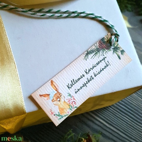 Karácsonyi Ajándékkísérő, nyuszi, nyúl nyuszis, Adventi Kártya, Mikulás, Ünnepi, kiskártya, ajándékkártya, téli