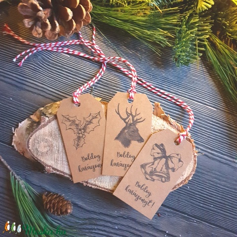 Vintage Karácsonyi Ajándékkísérő, újrahasznosított papír, Mikulás, barna, Ünnepi kiskártya, ajándék, natúr, kraft