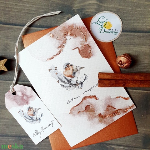 A/6-os méretű Igényes kinyitható Egyedi Karácsonyi képeslap, borítékkal.