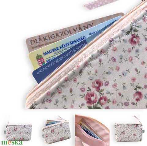 Japán pihe-puha prémium pamut textilből készült ez a kétrekeszes virág mintás, irattartó pénztárca. Belsejét hozzáillő textillel béleltem. A cipzárt különleges hímzéssel díszítettem. Tárolhatók még benne a mindennapos használatban lévő sminkek, kozmetikai szerek, mobil kellékek,, fülhallgató vagy egyéb apróságok.
