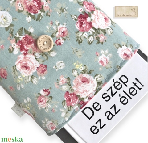 Türkiz alapon rózsa mintás prémium pamut KÖNYVTOK akár gombos zárral - Artiroka design