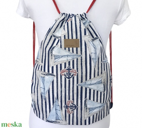 Tengerész stílusú - vitorlás hajó mintás, egyedi hátizsák, ovis zsák, tornazsák, edzéshez, úszáshoz - Artiroka design