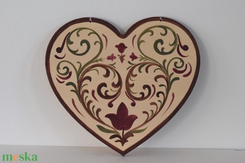 Kézzel festett szív tábla népi motívumokkal -Megyaszó