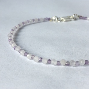 1,5mm-es ametiszt és 2,5mm-es rózsakvarc szemekből fűzött minimál karkötő.