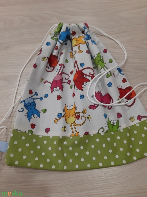 Tornazsák - cuki cicók, fűzöld pöttyössel