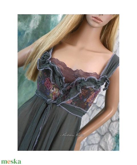 - Anyaga: elasztikus brokát, muszlin, franciacsipke