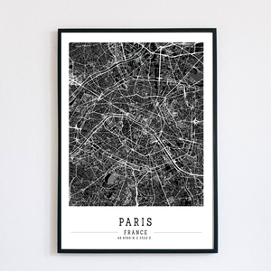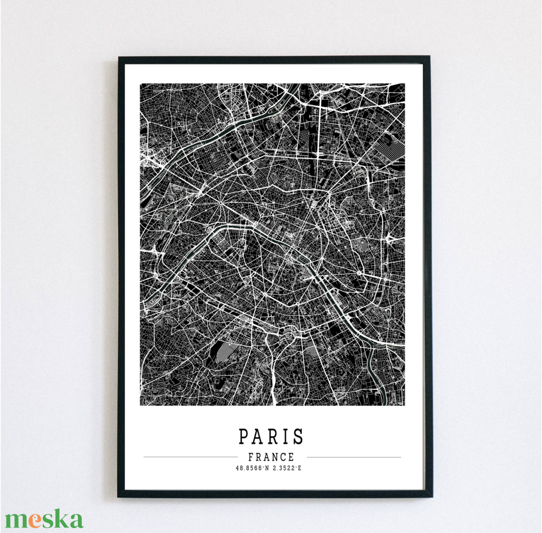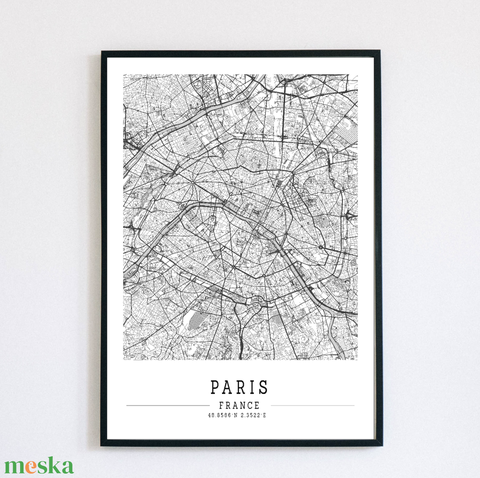 Minimalista PÁRIZS fekete-fehér dekorációs térkép