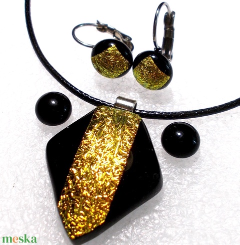 Fekete-arany ékszerszett, ajándék ballagásra, névnapra, születésnapra.