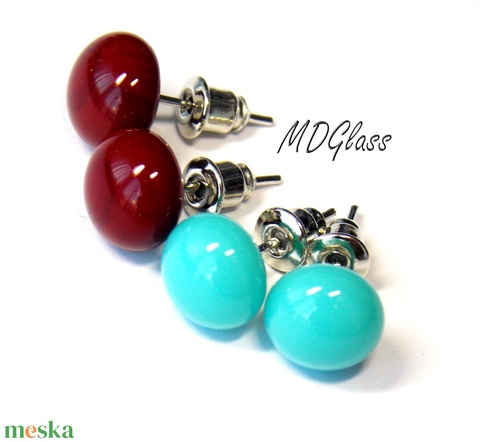 Türkizkék bordó pötty fülbevaló, 2 pár, üvegékszer