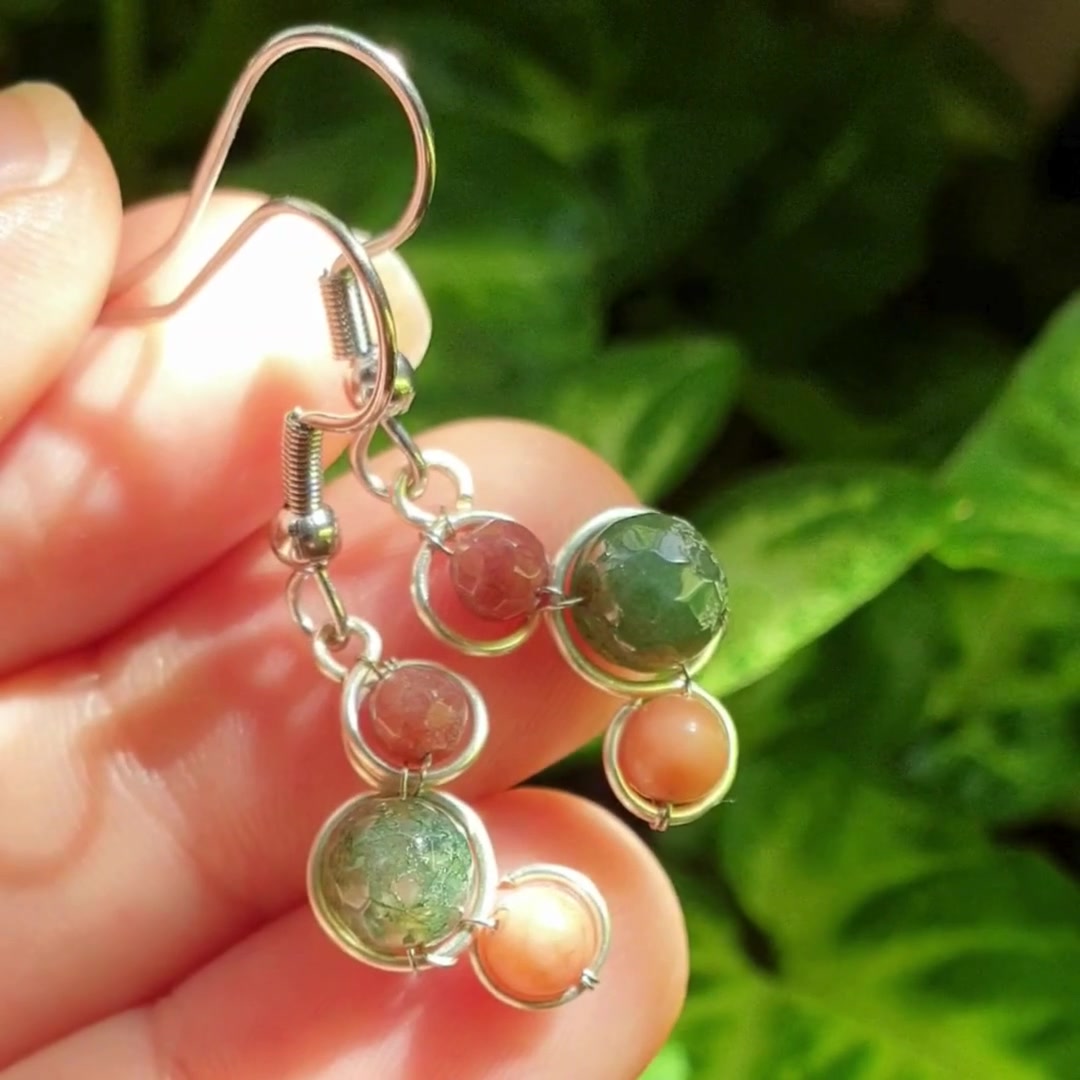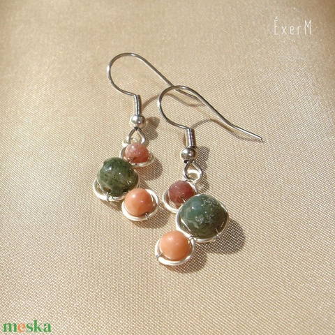 - Anyaga: ásvány, indiai achát, rózsaopál, ezüstözött ékszerdrót, nemesacél fülbevaló akasztó