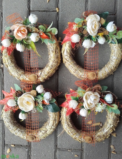 ŐSZI szalma alapos-virágos koszorú, kopogtató KÉSZTERMÉK