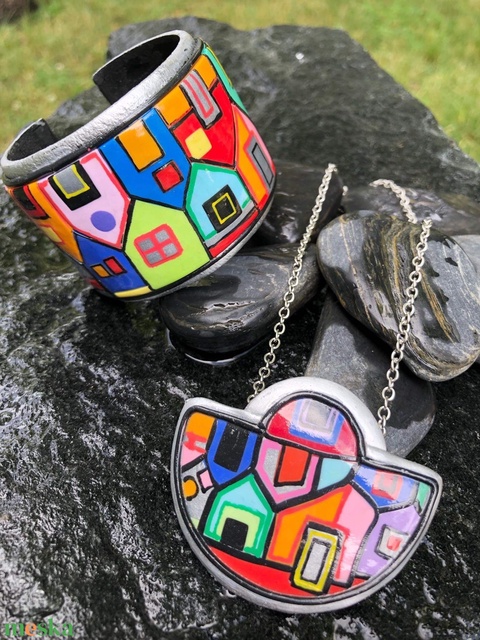 Hundertwasser stílusú ékszerszett